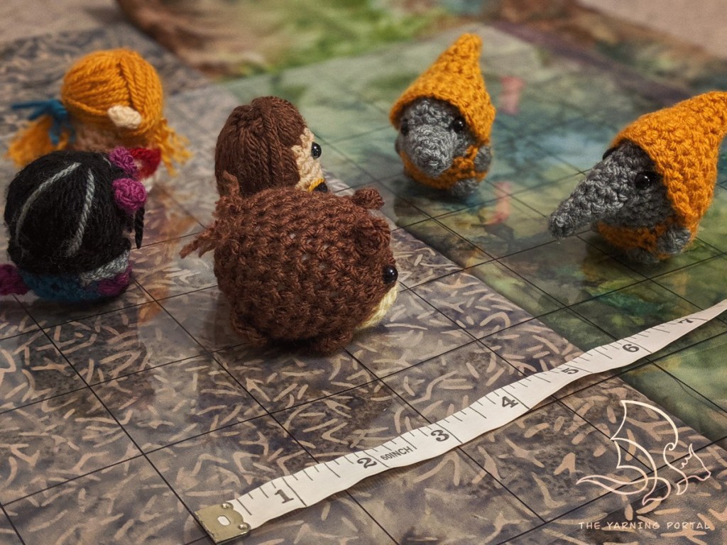 For our first session, I had each player’s miniature ready, plus Durnan and some monsters. It was a complete surprise for my party that I’d crocheted their miniatures and the squeals of delight as I unveiled them will always warm my heart.