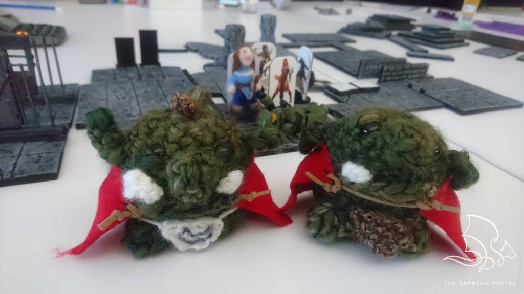 I first dabbled with crochet whilst I was still a player. I was Alioth, a goliath barbarian who during her adventures acquired two goblins, Roarke and Droupe, from dungeon raids – and instead of killing them, strapped them to her back. Turned out Droupe was pretty good with his numbers and even became the party accountant for a while.