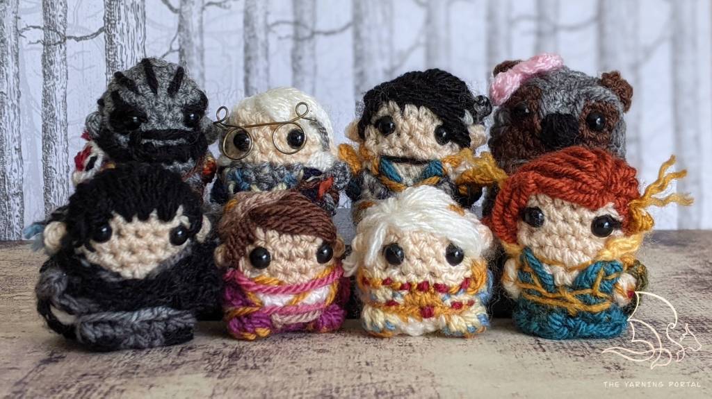 As my crochet skills improved and I was able to get more and more detail into a smaller area, I started to work on an idea of making mini’s that would fit into an inch by inch square – the same as a regular painted one. At that time, I had just finished Vox Machina’s adventures in Critical Role (my favourite thing to listen to when crocheting) and wanted to do an homage to the party who’d kept me company through all of my crocheting.